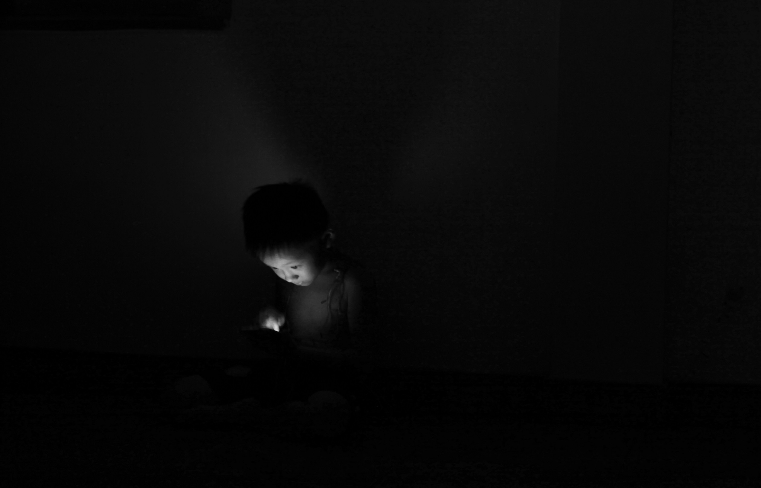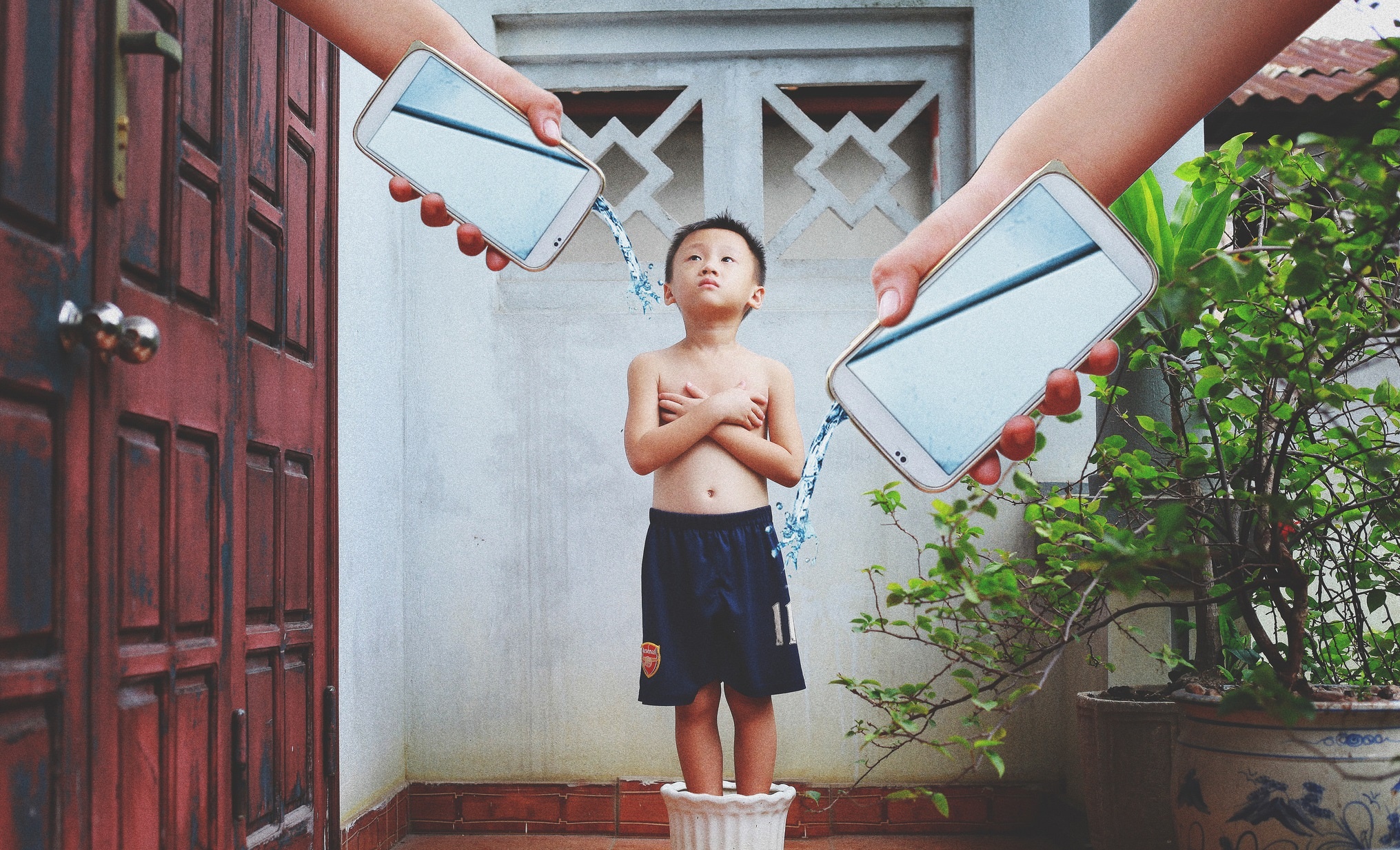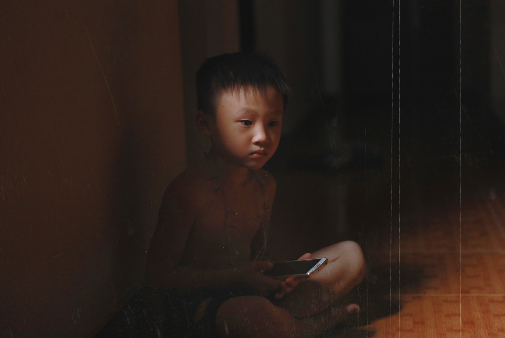 | Đứa bé lớn lên như một hạt giống, được tưới tắm từ những chiếc smartphone. Đôi mắt vô hồn không sức sống, đôi tay bé nhỏ ôm lấy thân hình không đủ dưỡng chất. |