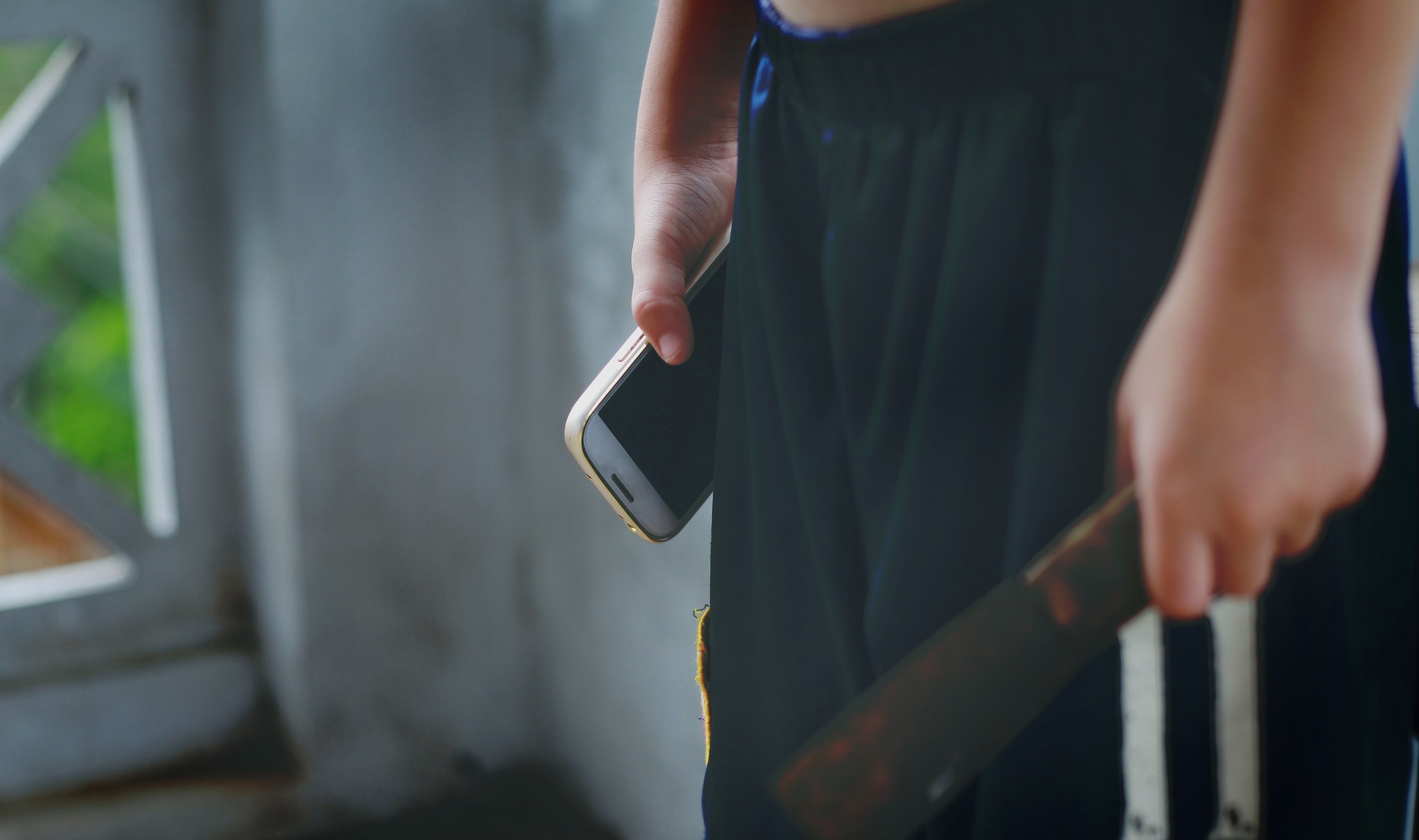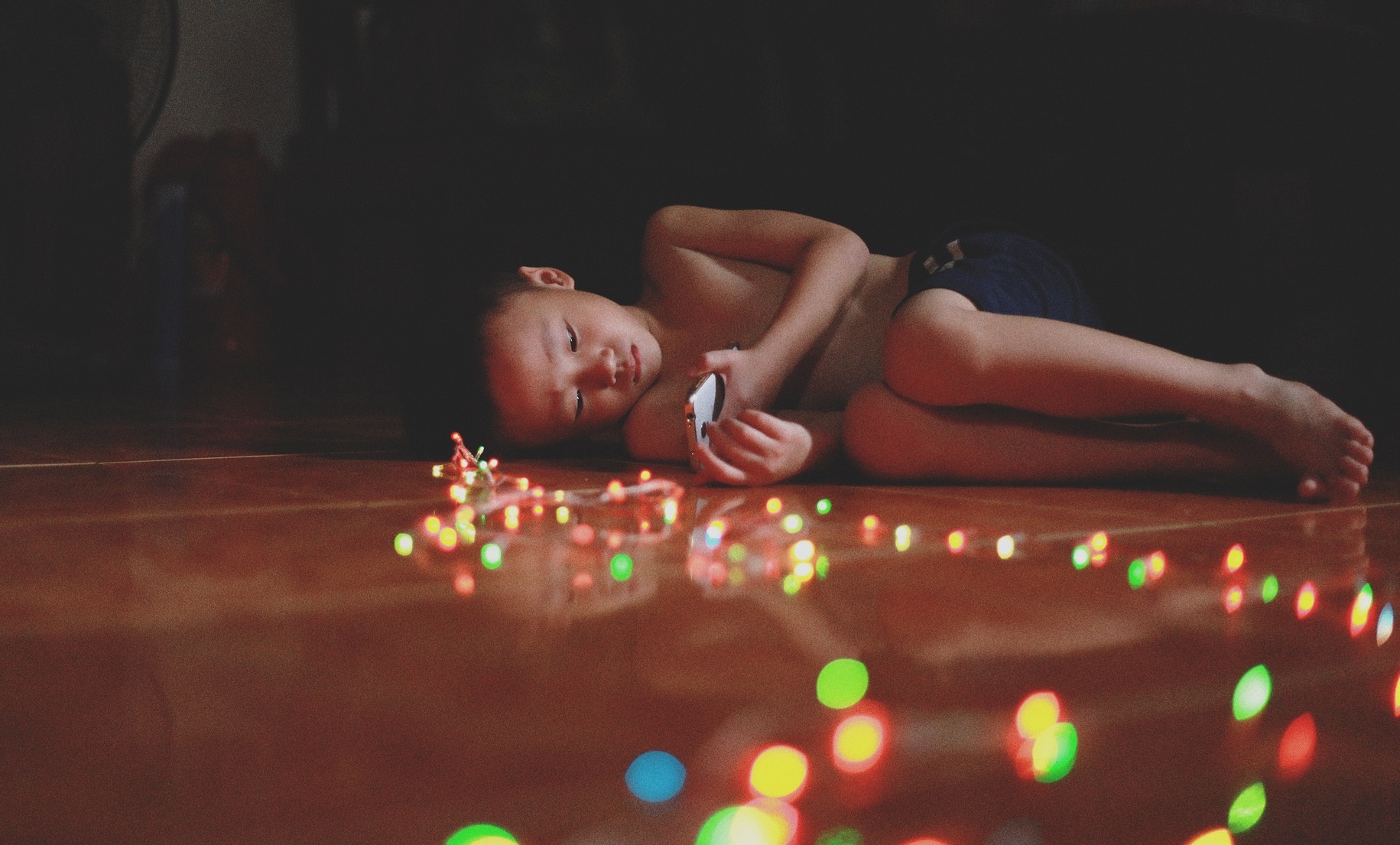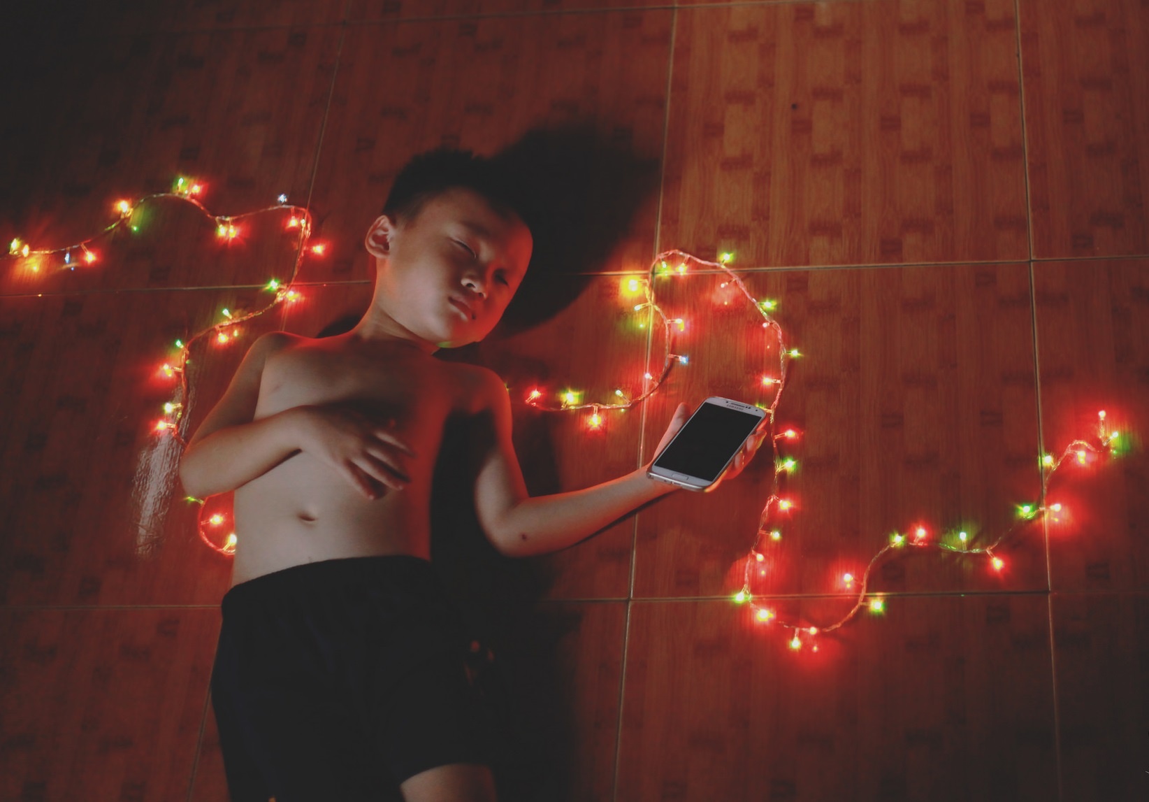 | Đứa bé lớn lên như một hạt giống, được tưới tắm từ những chiếc smartphone. Đôi mắt vô hồn không sức sống, đôi tay bé nhỏ ôm lấy thân hình không đủ dưỡng chất. |