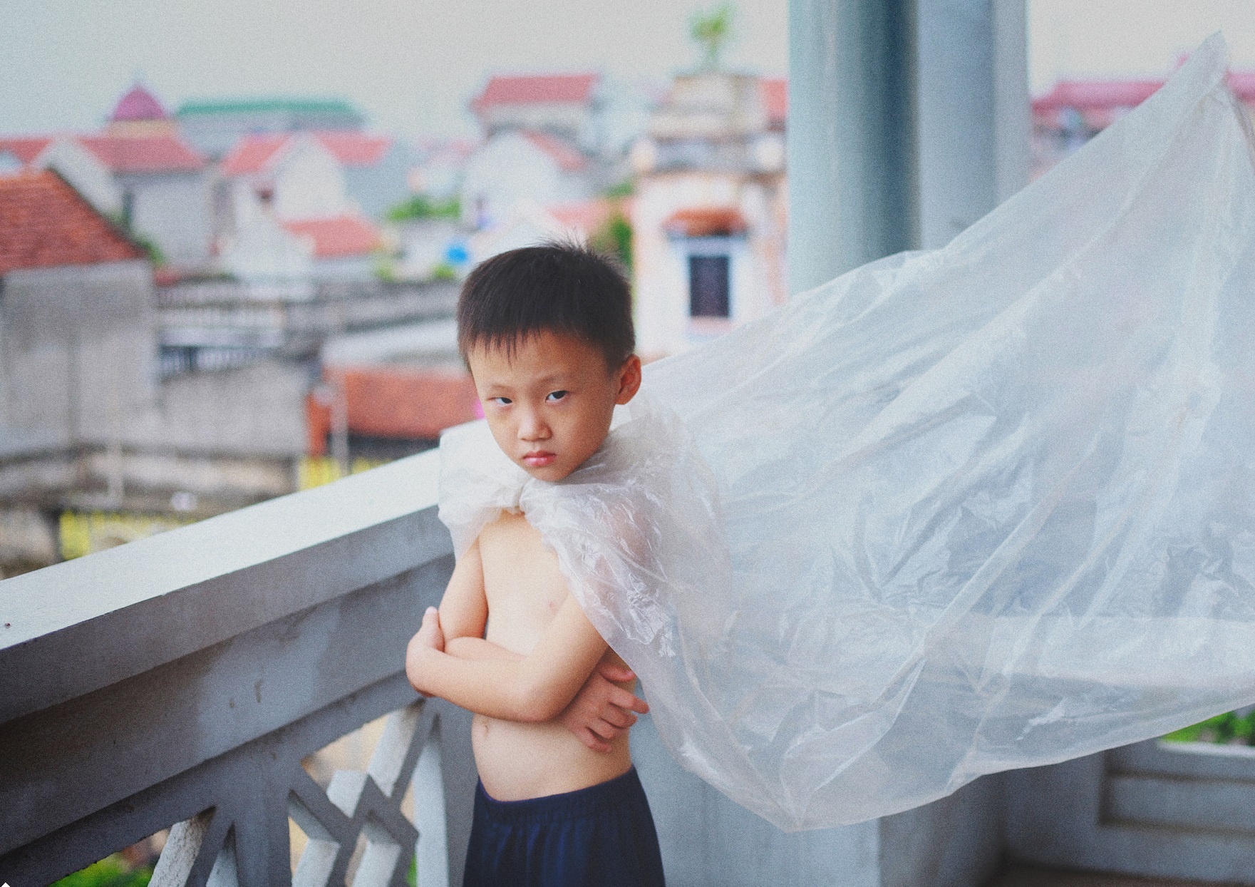 | Cậu bé đứng trên tầng thượng, lườm mọi thứ, tưởng tượng ra những mối nguy hiểm cậu đã cập nhật được từ công nghệ và nghĩ mình là siêu nhân. |