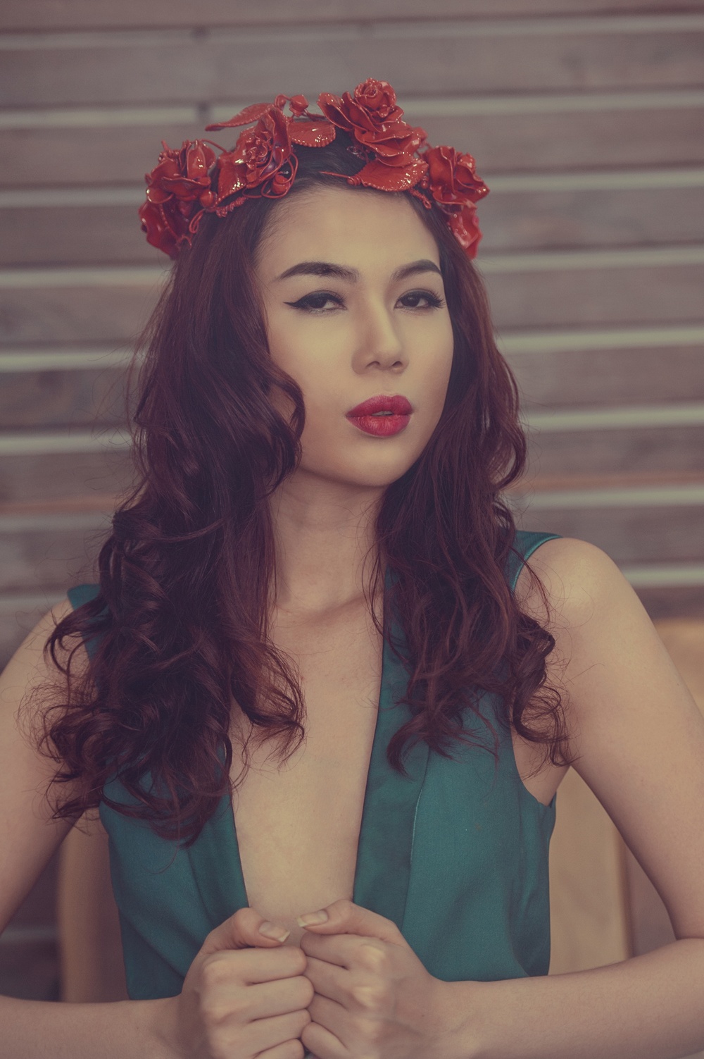 Trong bộ ảnh này, Kim Loan là nhân vật chính. Cô hóa thân vào hình ảnh người phụ nữ xinh đẹp, cuốn hút, được các chàng trai nâng niu, trân trọng.