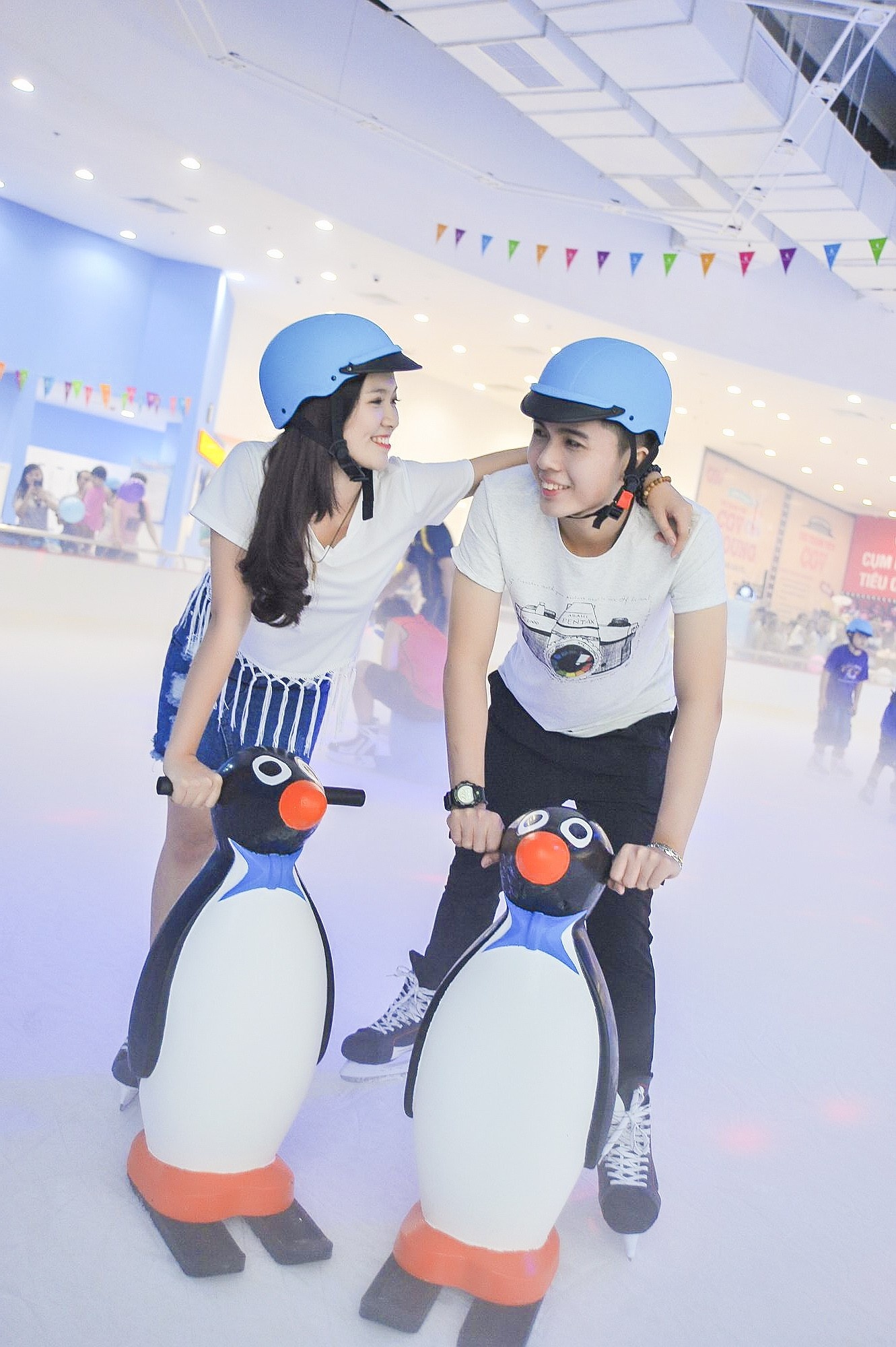 | Cả hai đều không biết chơi trượt băng, nhưng nếu thử cùng nhau thì… ngã cũng đỡ xấu hổ. Địa điểm thực hiện bộ ảnh tại Vincom Hùng Vương, Cần Thơ (Số 2 Hùng Vương, quận Ninh Kiều, TP Cần Thơ). |