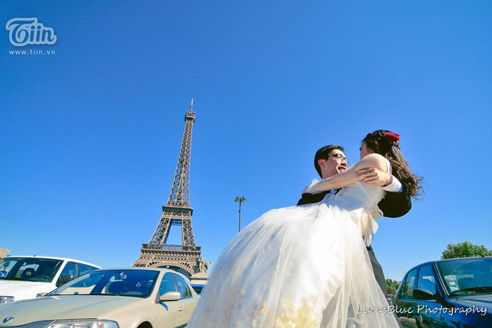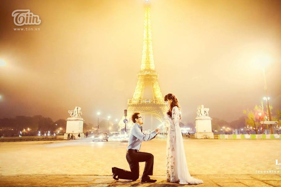 | Nhiều cặp đôi Việt hiện đang sống tại Pháp, thậm chí ở nhiều nơi khác đã đến tháp Eiffel để thực hiện bộ ảnh kỷ niệm tình yêu hoặc ảnh cưới. |