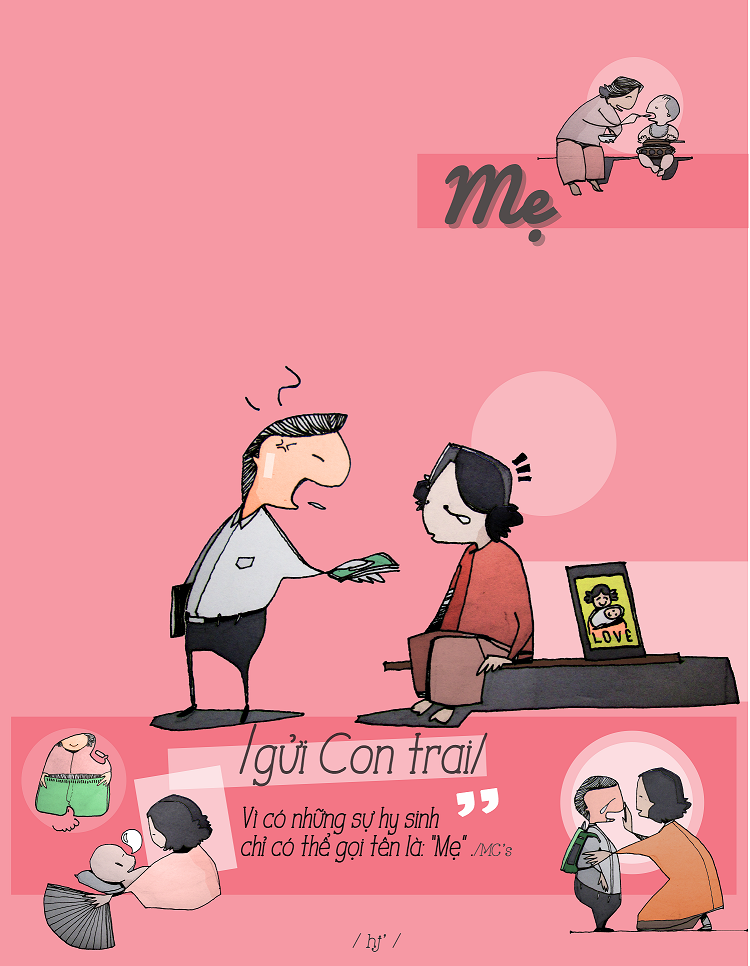 Để dành tặng những người phụ nữ nhân ngày 20/10, chàng trai 9x Minh Chính (ĐH KHXH&NV TP.HCM) đã thực hiện bộ ảnh minh họa về những vai trò của họ như làm mẹ, làm vợ, bà, chị gái.
