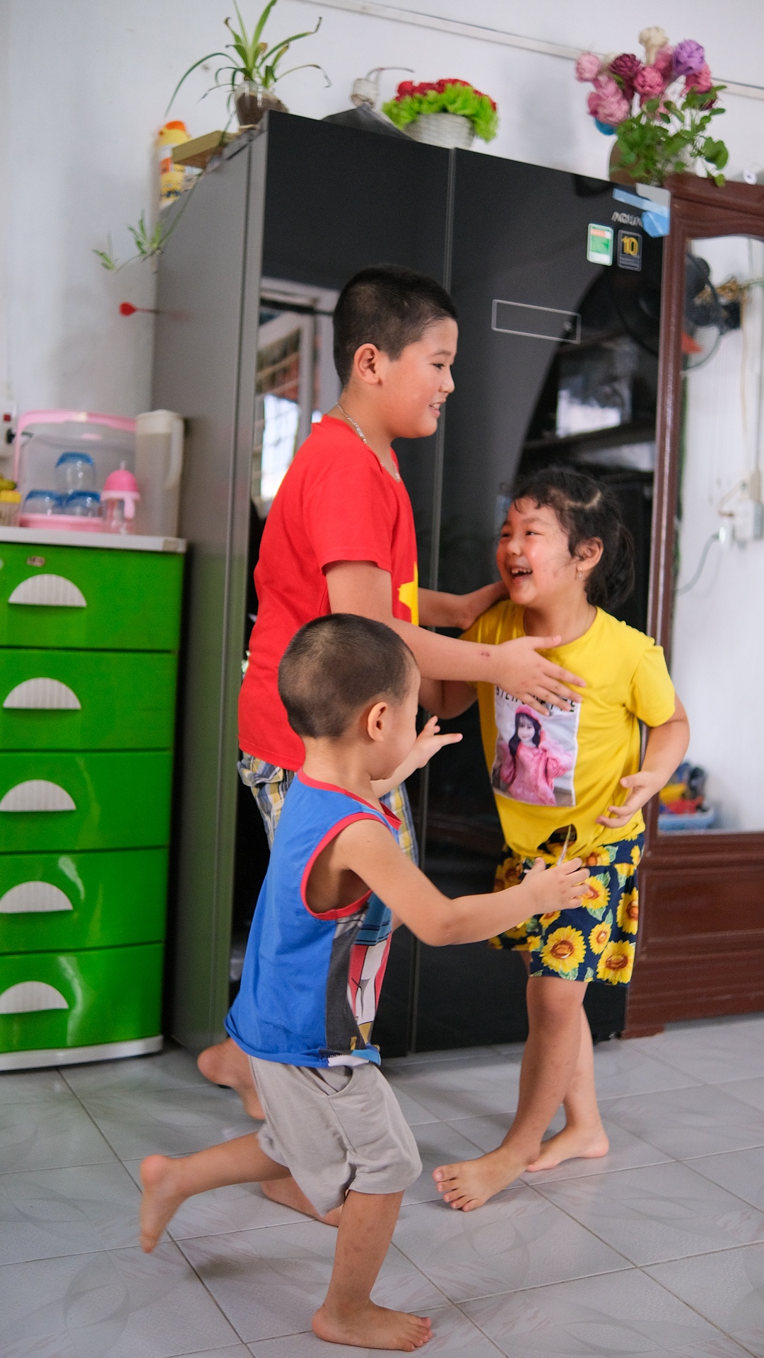 | Trước khi đi làm mẹ thường dặn 3 anh em, nếu có việc gì thì gọi điện cho mẹ hoặc khẩn cấp hơn thì hét to để hàng xóm nghe thấy. Bố mẹ cũng lắp thêm camera để tiện trông chừng chúng con. |