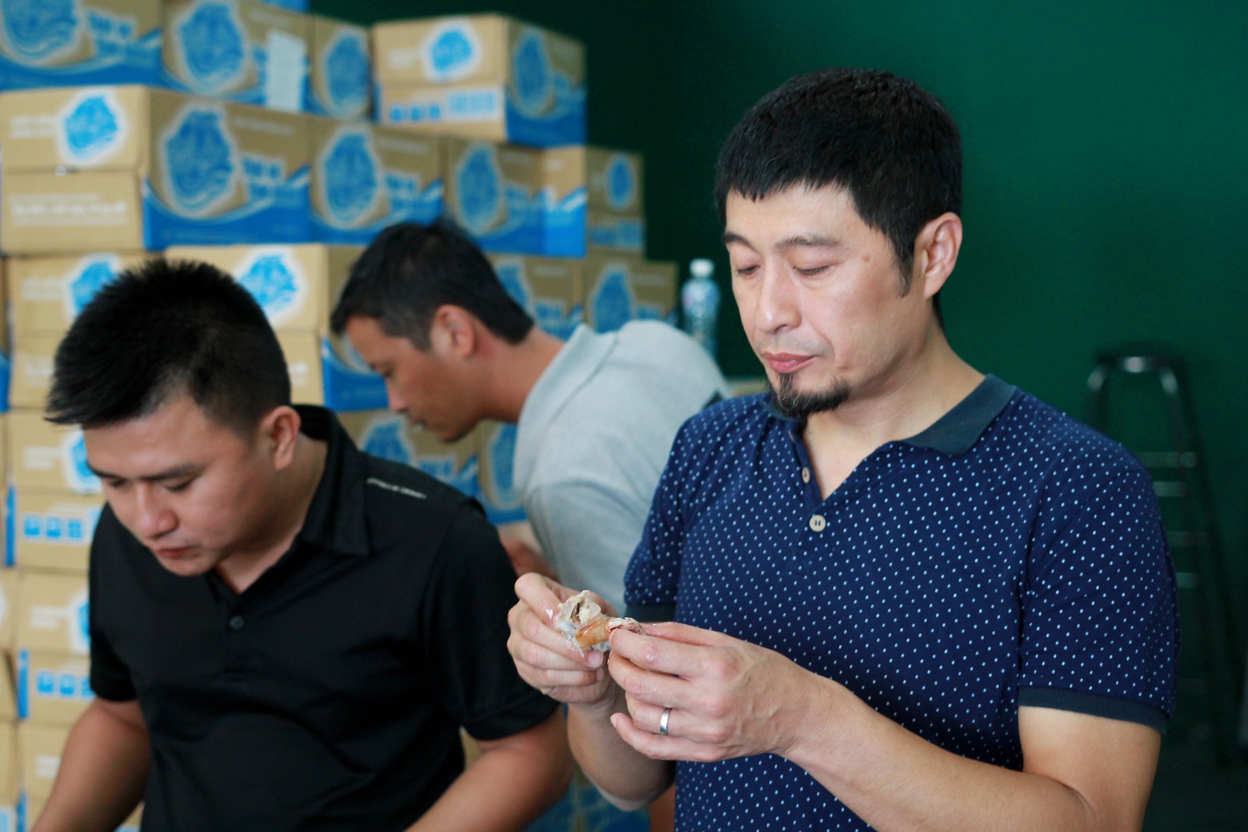 Fan cuồng mới bấm máy được vài ngày. Ở hậu trường, Thái Hòa xông xáo đảm nhận xử lý món heo quay để đoàn làm phim ăn lấy may. Anh dành riêng chiếc thủ lợn cho Charlie Nguyễn khi hài hước cho rằng đạo diễn cần nhiều may mắn hơn mọi người. |