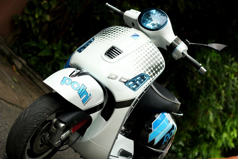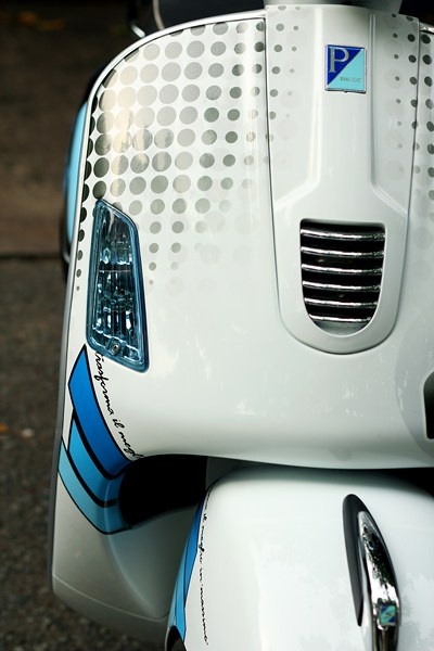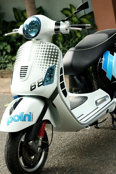 | Chiếc Vespa GTS được lựa chọn tông xanh Polini kết hợp với đen khiến chiếc xe trở nên thanh lịch nhưng không kém phần mạnh mẽ. |