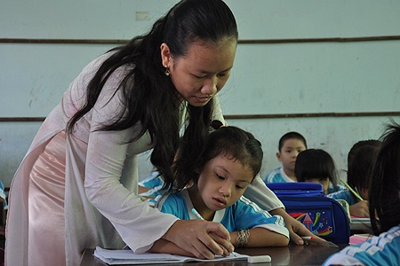 | Giáo viên hướng dẫn học sinh rèn chữ (Ảnh minh họa). |