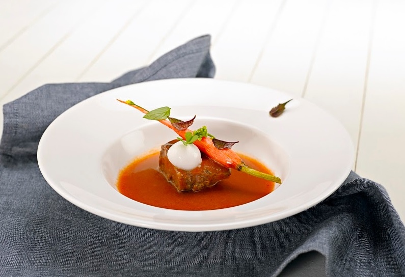 | Cách bày món bò nấu dừa sáp của đầu bếp Chiếc Thìa Vàng. |