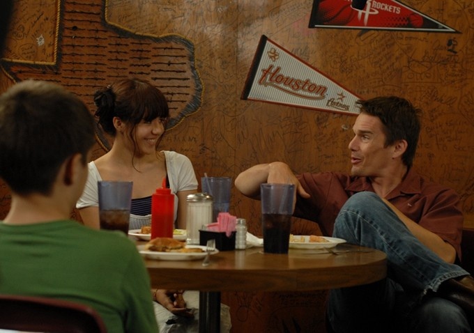 | Khán giả cũng có thể được gặp lại hình ảnh một Ethan Hawke vô cùng trẻ trung khi tài tử này thủ vai người cha của cậu bé Mason. |