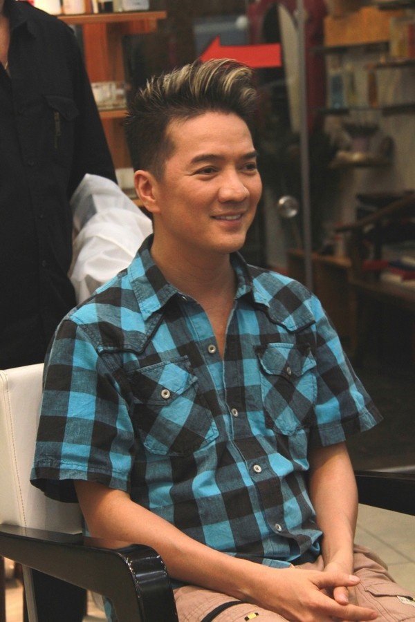 | Phía hậu trường, nam ca sĩ khá bình dị với mẫu áo được nhiều chàng trai yêu thích. |