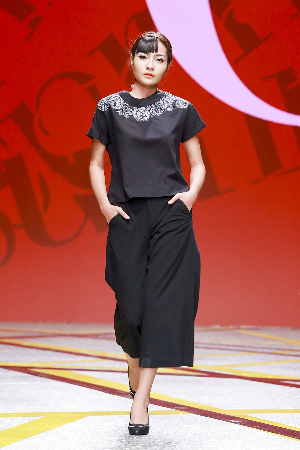 | Mới đây, NTKThương Huyền giới thiệu bộ sư tập đen - trắng ở Tuần lễ thời trang xuân hè 2016. |