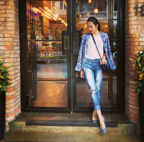 Gu thời trang phố của Hà Tăng đẳng cấp hơn khi cô sử dụng túi Chanel Boy. Túi có giá khoảng 125 triệu đồng. |
