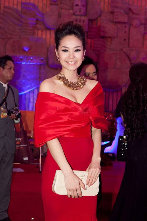 | Tham gia một sự kiện của làng giải trí Minh Hằng mix váy dạ hội với một chiếc clutch cầm tay của LV có giá 50 triệu đồng. |