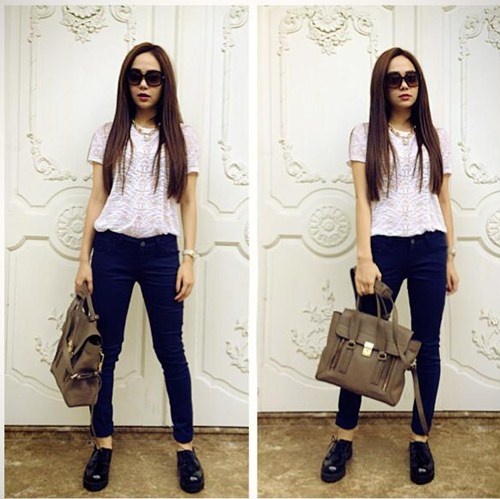 | Đây là mẫu túi được cô ưa chuộng mỗi lúc xuống phố. |