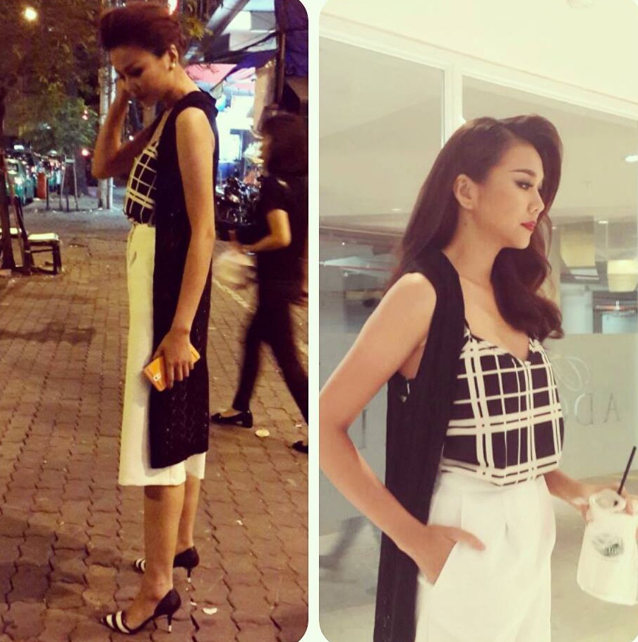 Cách phối màu hết sức thú vị của Thanh Hằng với đen và xám. Ảnh: T.Hằng.
