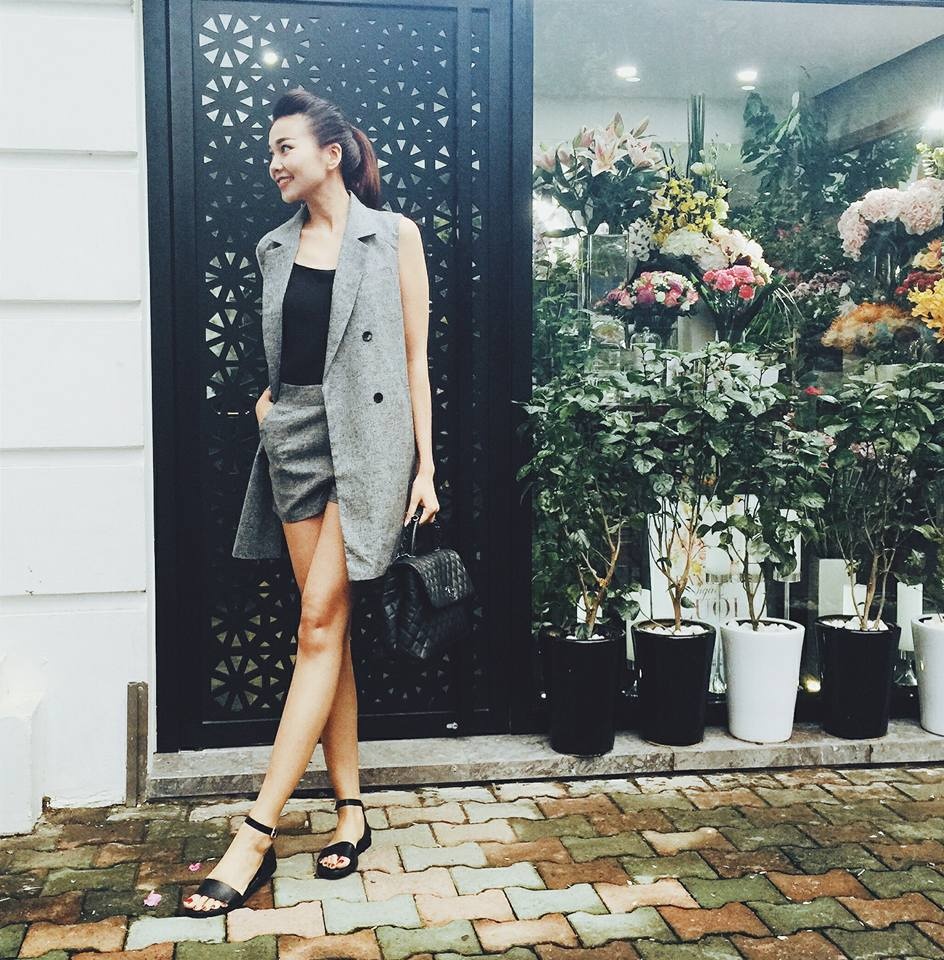 Phong cách thời trang năng động, cá tính của Thanh Hằng gắn liền với mốt vest không tay.