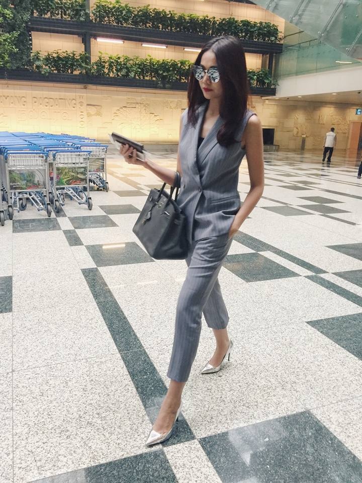 Cũng với tông màu xám, Thanh Hằng khoe vẻ thanh lịch, duyên dáng với quần âu và vest. Ảnh: T.Hằng.
