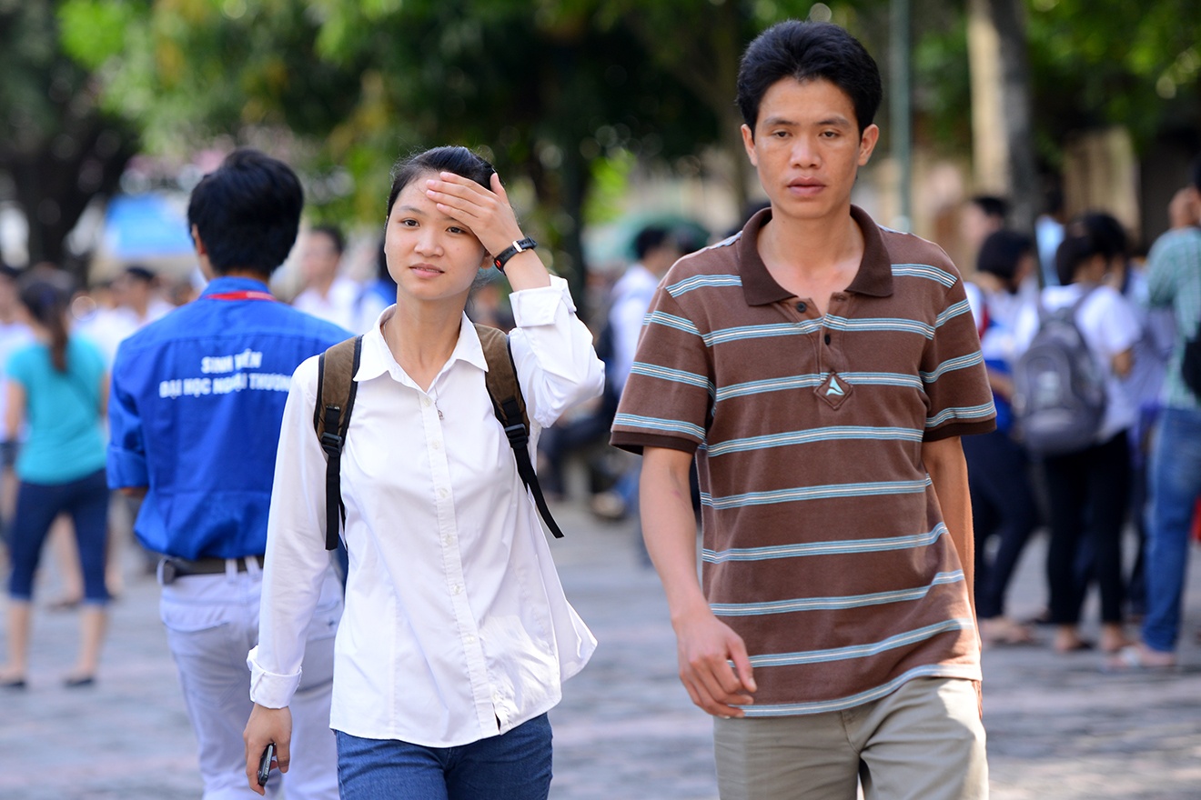 | Thí sinh làm thủ tục dự thi tại ĐH Ngoại thương sáng 3/7 (Ảnh: Tuấn Mark). |