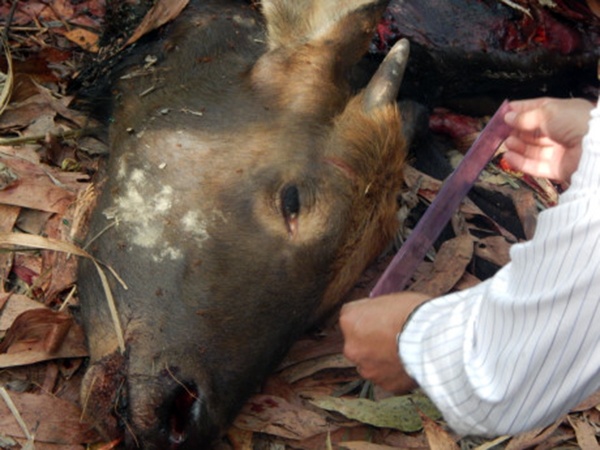 | Cá thể bò tót bị bắn hạ thuộc nhóm động vật nguy cấp, quý hiếm cần được bảo vệ. Ảnh: C.A. |