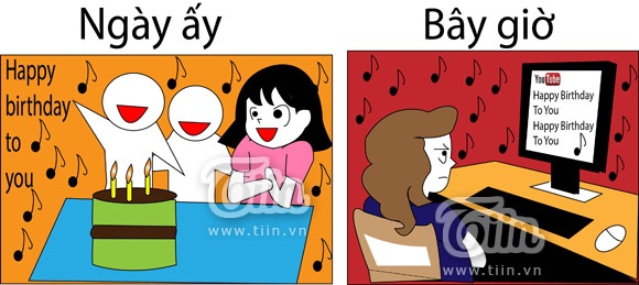 | Tiếng nhạc chúc mừng sinh nhật vẫn ngân vang nhưng xưa và nay thật khác. Xưa bạn bè hò hét, hát mừng bạn, nay bạn lẳng lặng ngồi nghe một mình và Youtube sẽ chúc mừng bạn. |