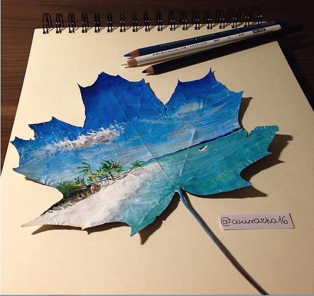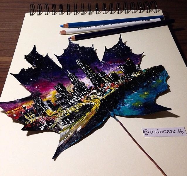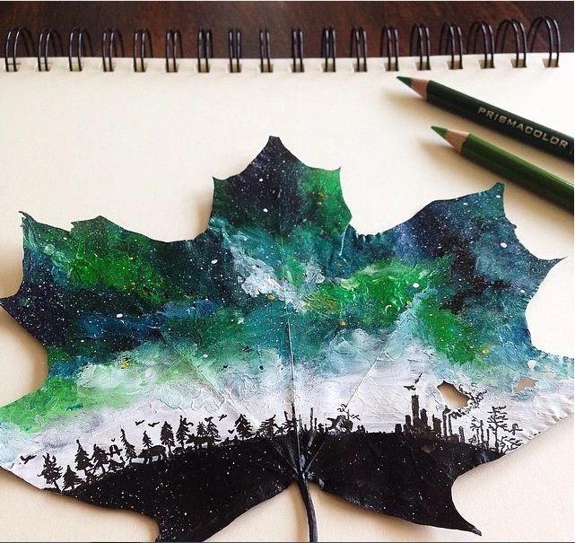 Không sử dụng những chất liệu có hại tới môi trường như chất pha loãng sơn, dung môi, bình xịt..., Joanna Wirazka, nữ họa sĩ người Ba Lan, vẫn tạo ra những bức tranh độc đáo và đẹp mắt bằng lối vẽ sáng tạo. Đó là vẽ tranh trên lá cây. |