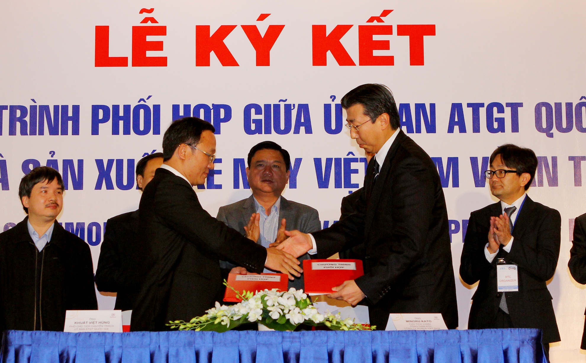 | Hiệp hội các nhà sản xuất xe máy Việt Nam và Ủy ban an toàn giao thông quốc gia ký kết chương trình phối hợp về an toàn giao thông. |