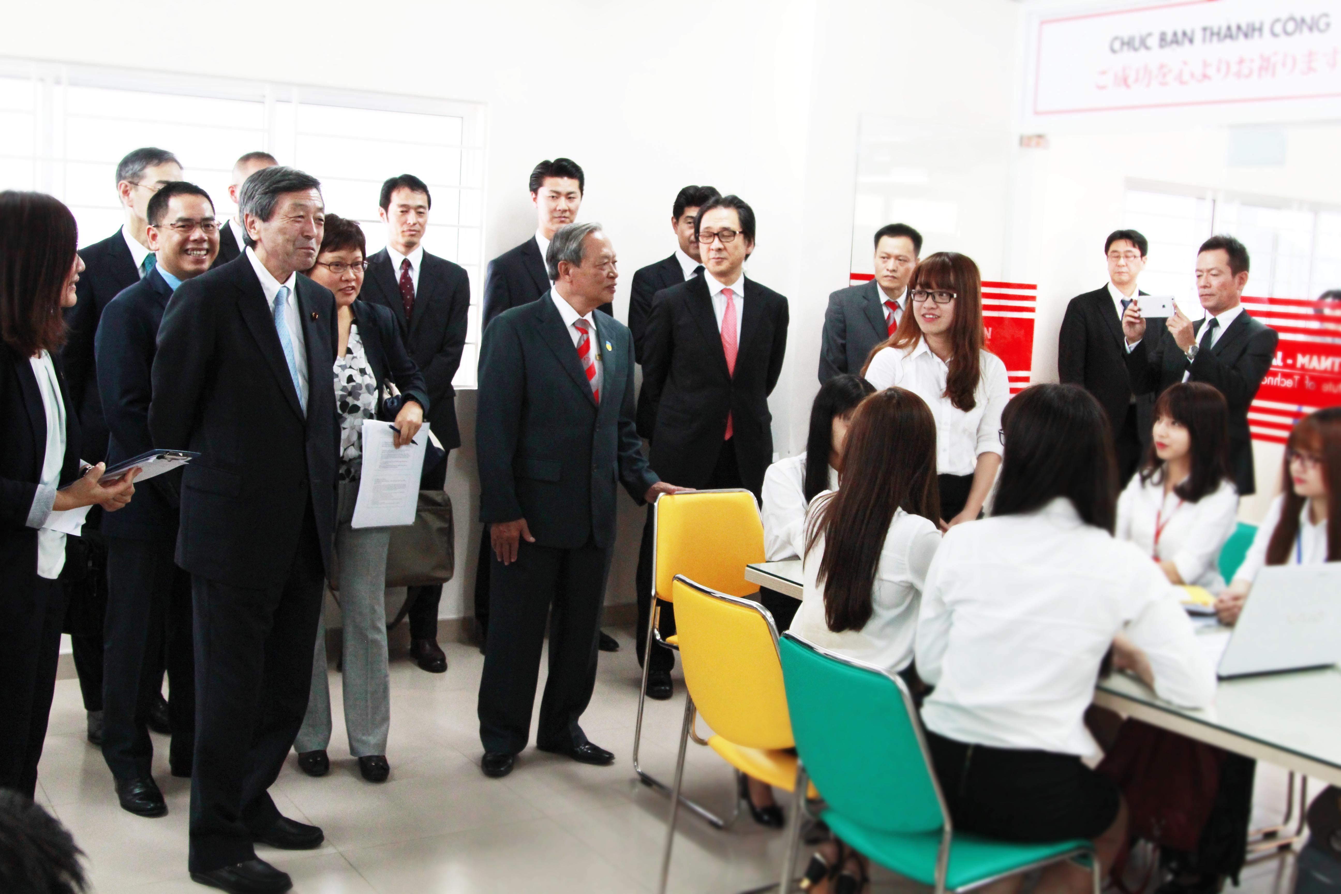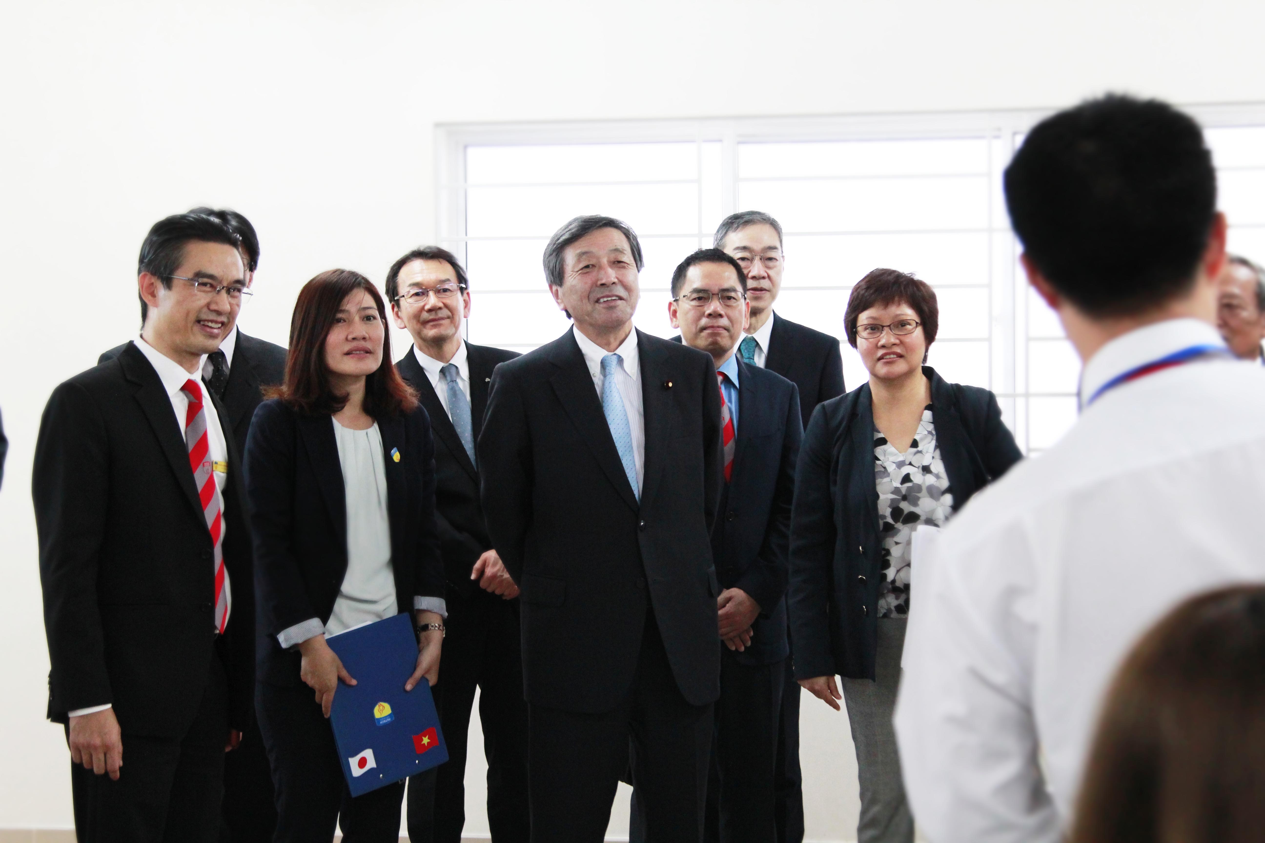 Bộ trưởng Hayashi Motoo ấn tượng với môi trường học tập chuyên nghiệp của HUTECH. |