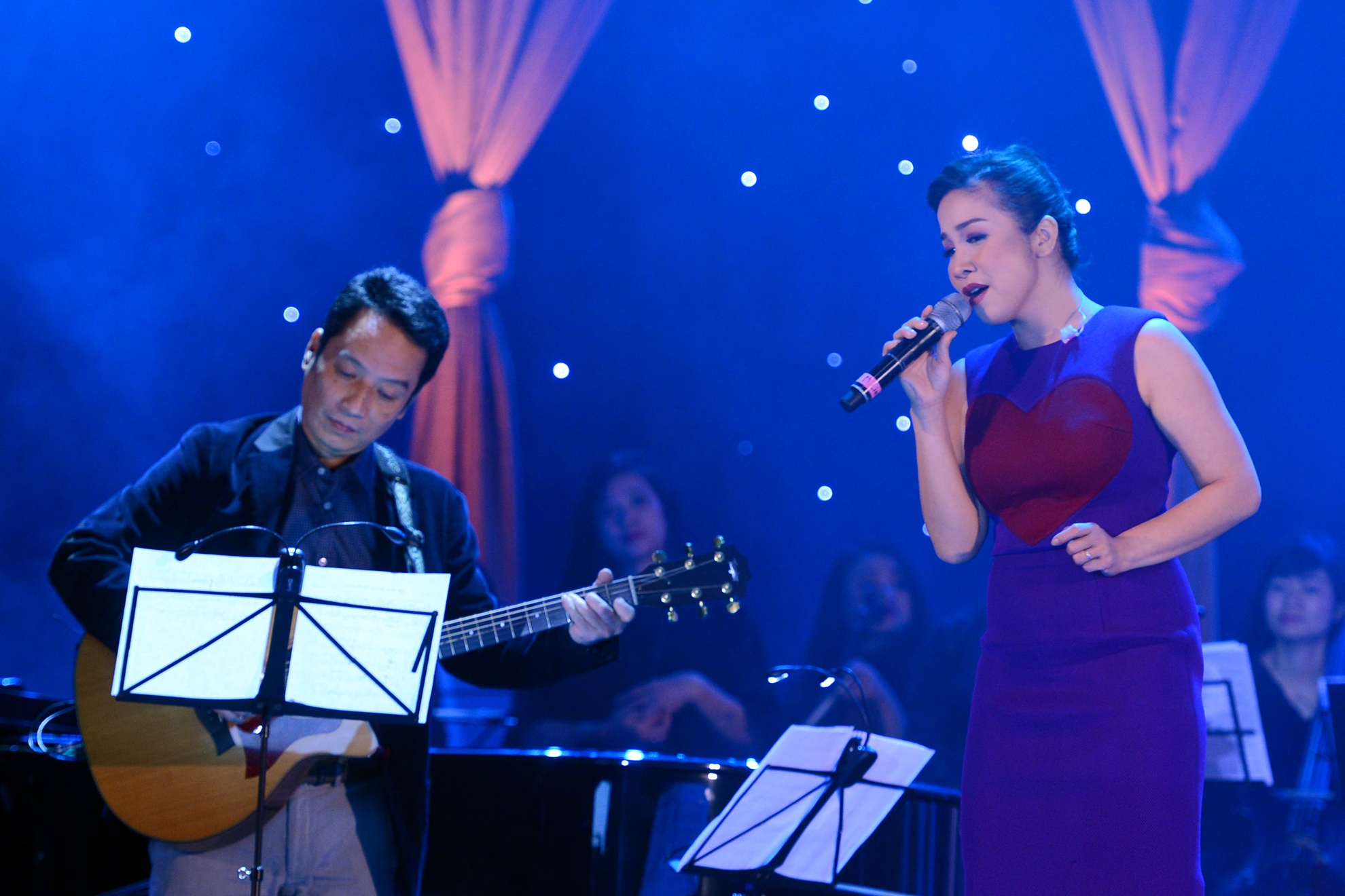 | Nhạc sĩ Anh Quân đệm đàn cho diva Mỹ Linh. |