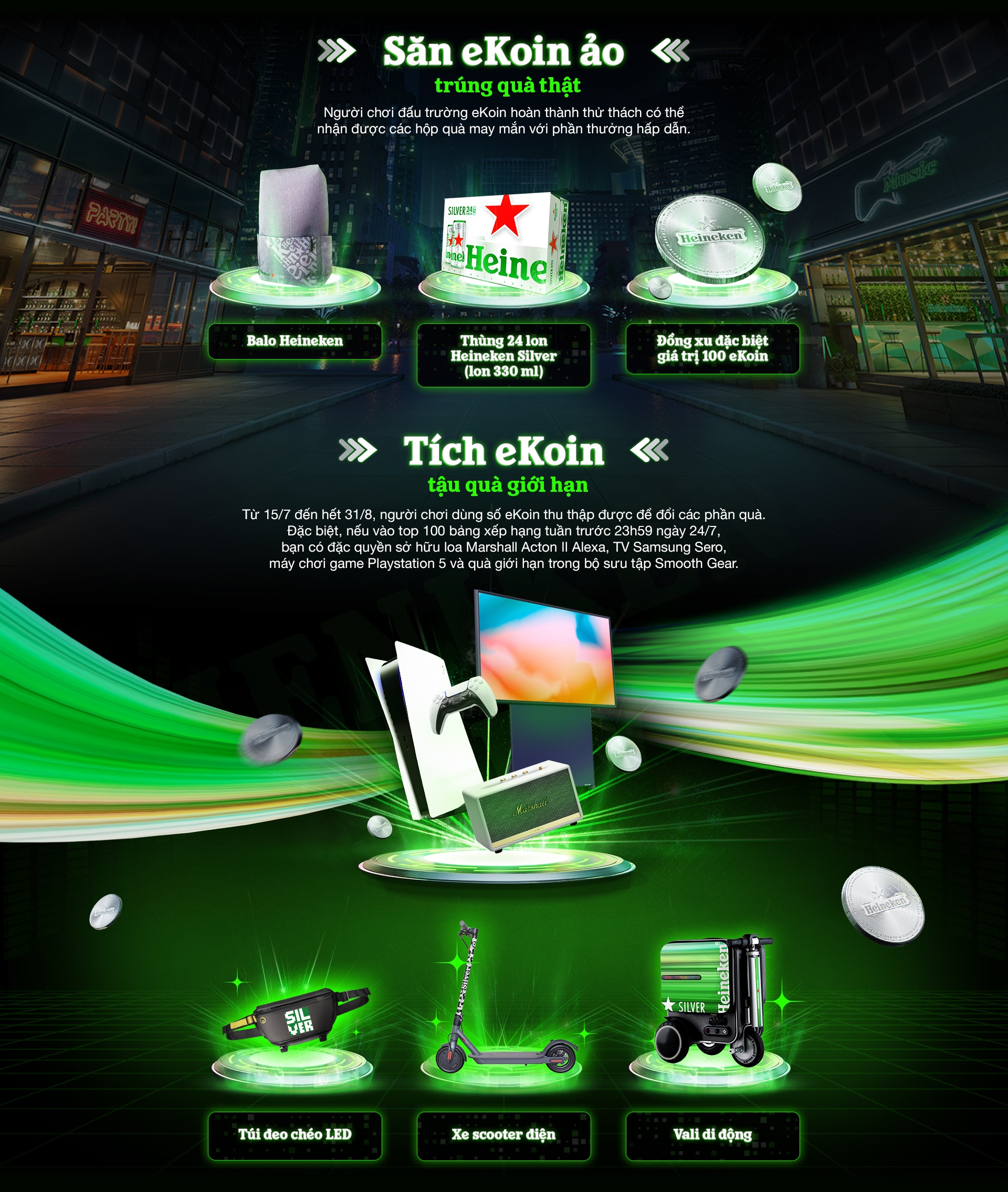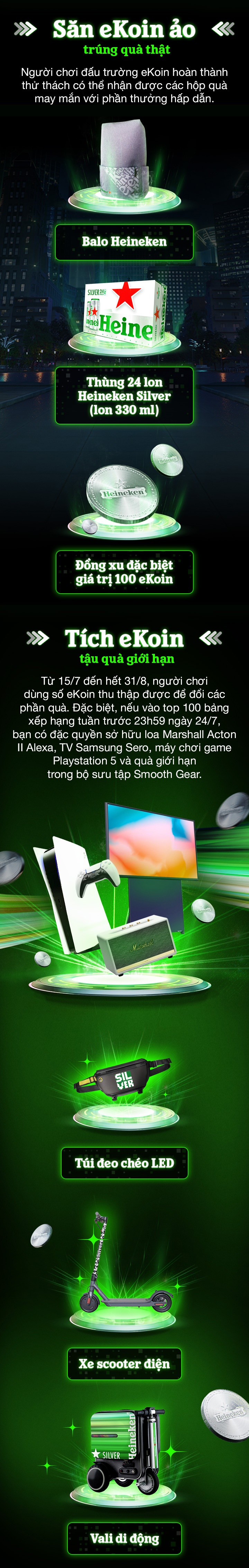 Hoạt động đặc biệt nhất của Heineken Silver là “săn” eKoin đổi quà cùng những trải nghiệm đặc quyền từ bộ tứ Silver Gang.