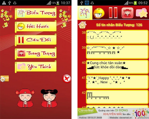 SMS Chúc Tết sẽ cung cấp cho người dùng nhiều mẫu tin nhắn hay, đặc sắc để gửi đến người thân, bạn bè. Thậm chí, bạn còn có thể chọn gửi tin với các biểu tượng ngộ nghĩnh, tin chúc hài hước, trang trọng, chúc bằng câu đối hoặc cả tin chúc bằng tiếng Anh. Để vui vẻ hơn, bạn có thể xem thông tin về bói toán ngay bên trong ứng dụng.