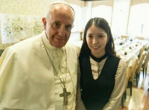 | Hình ảnh BoA chụp chung với Giáo hoàng được fan truyền tay nhau. |