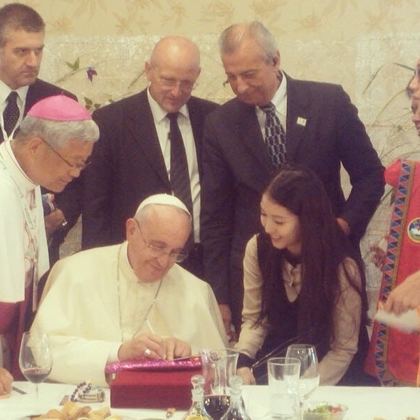 Ngày 15/8, Giáo hoàng Francis đã tham dự buổi tiệc cùng một số đại diện thanh thiếu niên xuất sắc đến từ khắp các quốc gia châu Á và BoA là một trong số những người hiếm hoi có được vinh dự này.