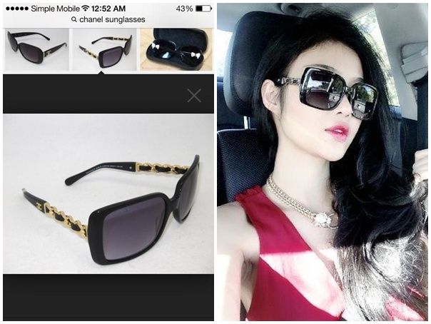 Julia Hồ sở hữu chiếc kính có phong cách hiện đại mạnh mẽ của Chanel. Mẫu kính này từng được Lady Gaga sử dụng. Mẫu kính có phần dây xích trên gọng giúp tăng hiệu ứng cá tính.