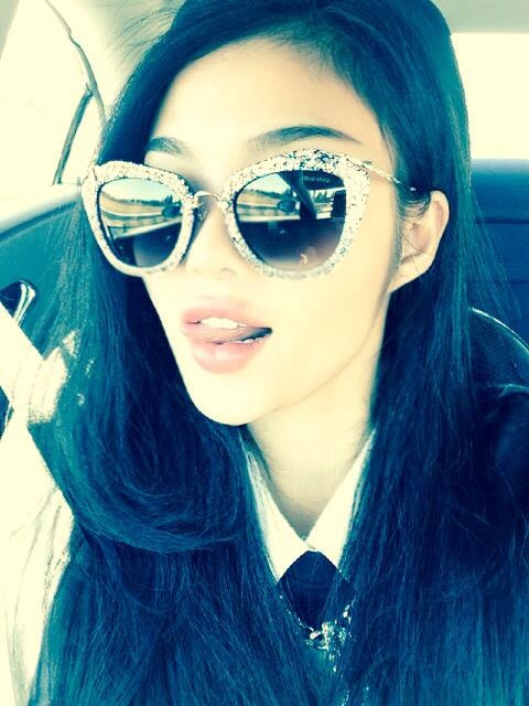 Mẫu kính có đính họa tiết hai bên góc gây sốt trong thời gian qua, là tín đồ sành điệu Julia Hồ cũng sở hữu loại kính vừa nữ tính vừa ''ngầu'' này. Đây là mẫu kính của Dolce & Gabbanatrị giá hơn 500 USD.
