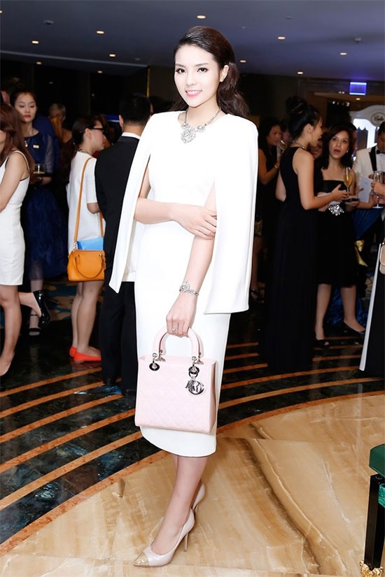 | Túi xách hàng hiệu Lady Dior giá gần 80 được Kỳ Duyên phối cùng bộ cánh màu trắng tinh khôi. |