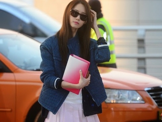 Một thành viên khác cũng chăm chút rất kỹ cho thời trang sân bay khi lên đường sang Việt Nam là Yoona. Chiếc áo khoác ngoài màu xanh của Yoona trông khá lạ mắt, do làm bằng chất liệu denim pha chần bông. Áo khoác nhãn hiệu Isabel Marant Etoile trị giá khoảng 13,5 triệu đồng.