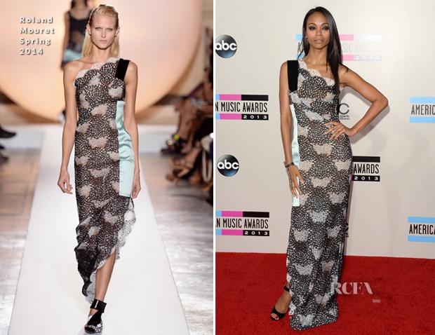 | Zoe Saldana chọn chiếc váy hiệu Roland Mouret, tuy nhiên, bộ cánh khó làm cô nổi bật, thậm chí cô còn bị "đánh chìm" bởi màu váy, màu da tối sẫm. |