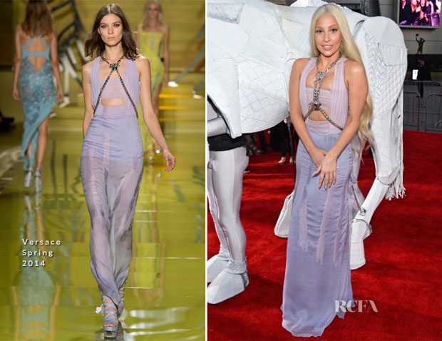 | Lady Gaga bỗng dưng hiền lành trong thiế kế của Versace. |