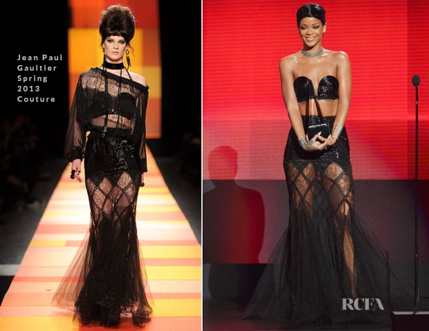 | Rihanna gợi cảm trong thiết kế của Jean Paul Gaultier cao cấp dành cho xuân hè 2013. |