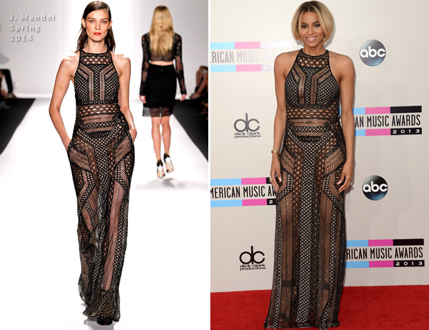 | Ciara gợi cảm cùng bộ váy hiệu J.Mendel. |