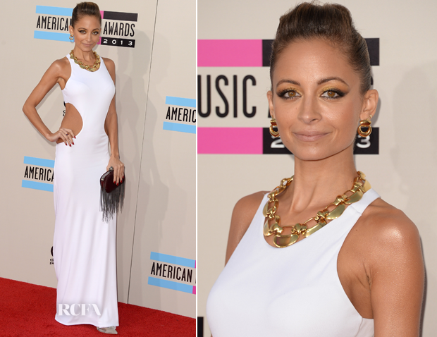 | Nicole Richie khoe da nâu trong chiếc váy trắng hiệu Emilio Pucci. |