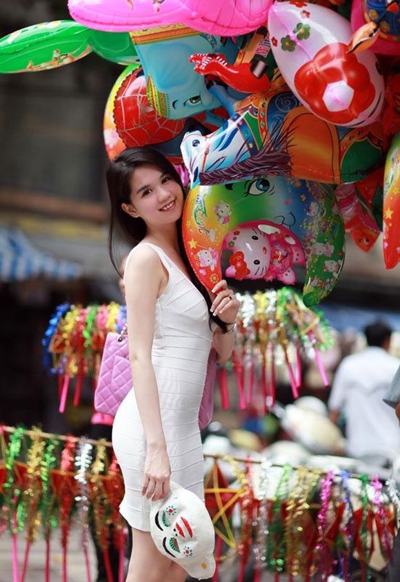 | Ngọc Trinh nổi bần bật trên phố với kính, giầy của Dior, đặc biệt là chiếc túi Hemes Kelly đỏ có giá hơn 200 triệu đồng. |