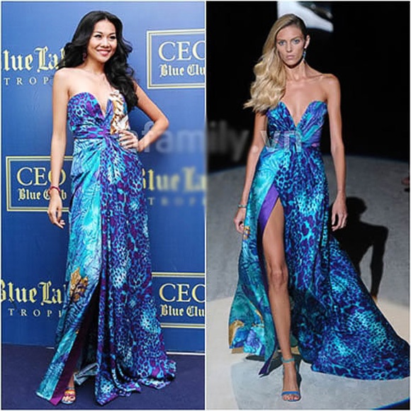 | Thanh Hằng mặc chiếc váy có giá 5.700 USD (khoảng 120 triệu đồng) và sandal quai mảnh có giá 895 USD (khoảng 19,6 triệu đồng). Đây là mẫu thiết kế nằm trong bộ bộ sưu tập của thương hiệu cao cấp, sang trọng bậc nhất - Salvatore Ferragamo. |