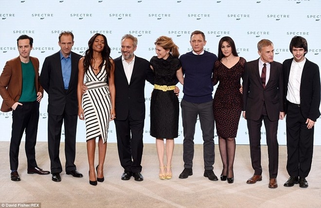 | Dàn sao khủng của Spectre trong buổi họp báo ra mắt đoàn làm phim năm ngoái. |