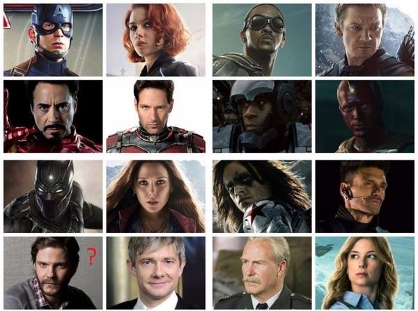 | Dàn diễn viên hạng A của Captain America: Civil War (2016). |
