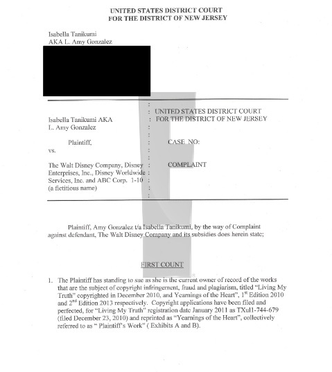 | Một trang của đơn kiện đến từ Isabella Tanikumi. |
