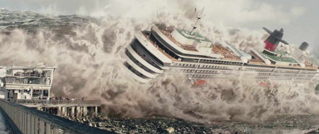 Trận động đất từ San Andreas còn gây ra nhiều dư chấn, thậm chí kéo theo cả một trận sóng thần, toan nhấn chìm tất cả trong biển nước. Những đại cảnh tàn phá càng trở nên ám ảnh trên nền nhạc California Dreamin’ do nữ ca sĩ Sia hát lại.