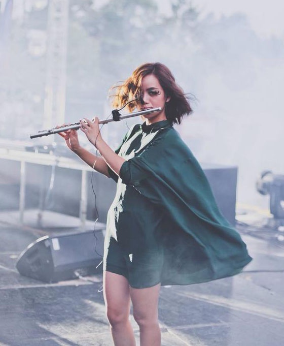 | Trong bản cover Radioactive, SlimV kết hợp cùng Huyền Trang - cô gái thổi sáo flute ấn tượng tại Vietnam's Got Talent 2013. |