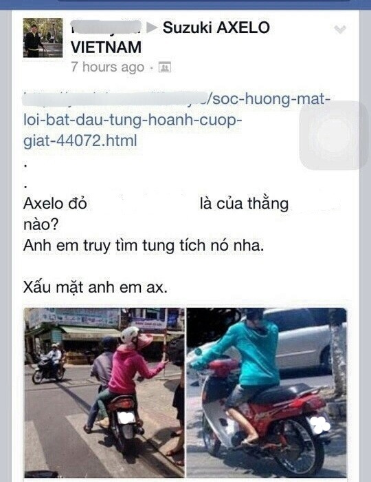 Một số trang mạng còn viết bài cảnh giác về tên cướp nữ với nhiều chiêu dàn cảnh cướp tài sản ngay giữa phố khiến nhiều người lo sợ.