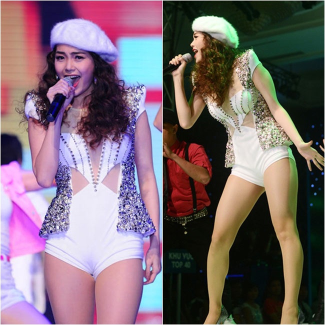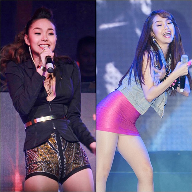Quần, váy ngắn 5 phân là những trang phục thường xuyên được người đẹp lựa chọn trên sân khấu ca nhạc. |